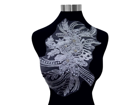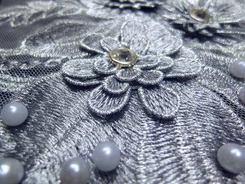 ストーン・パールビーズ付 刺繍・レースモチーフ