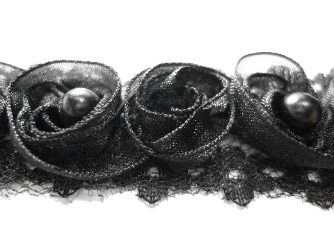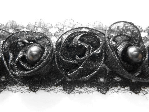 ノンストレッチ パールビーズ付 フラワーレースブレード